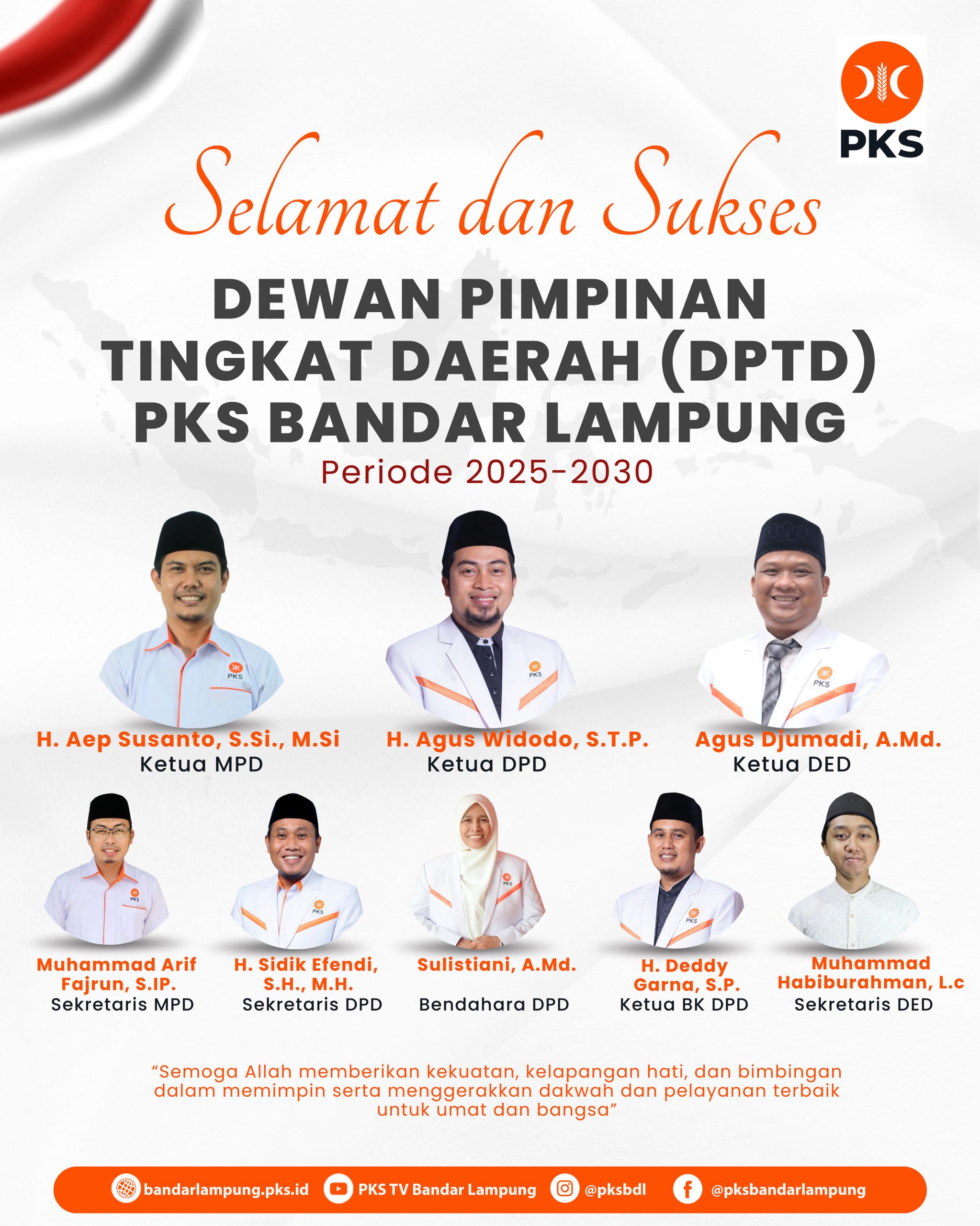 Bandar Lampung – DPD PKS Bandar Lampung resmi memiliki nakhoda baru. Agus Widodo, legislator aktif di DPRD Bandar Lampung, ditunjuk memimpin struktur partai untuk periode 2025–2030. Pengumuman tersebut disampaikan langsung oleh Ketua DPW PKS Lampung, Ade Utami Ibnu, pada Kamis, 14 Agustus 2025—tepat di Hari Pramuka—sebagai momentum meneguhkan komitmen pengabdian partai kepada masyarakat.